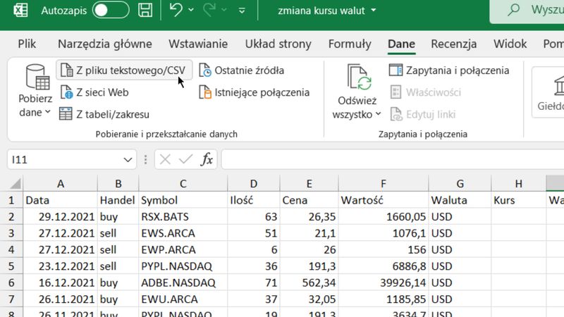 W jaki sposób przeliczyć kurs dowolnej waluty np. dolara czy euro na złotówki. Pokażę wam jak można szybko zaimportować kursy walut NBP z całego roku i na ich podstawie przeliczyć wartości na złotówki. Następnie zaprezentuję jak pobrać kurs z dnia poprzedzającego, który jest potrzebny podczas obliczenia podatku od zysków z zagranicznych akcji.