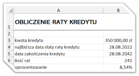Obliczenie raty kredytu w Excelu